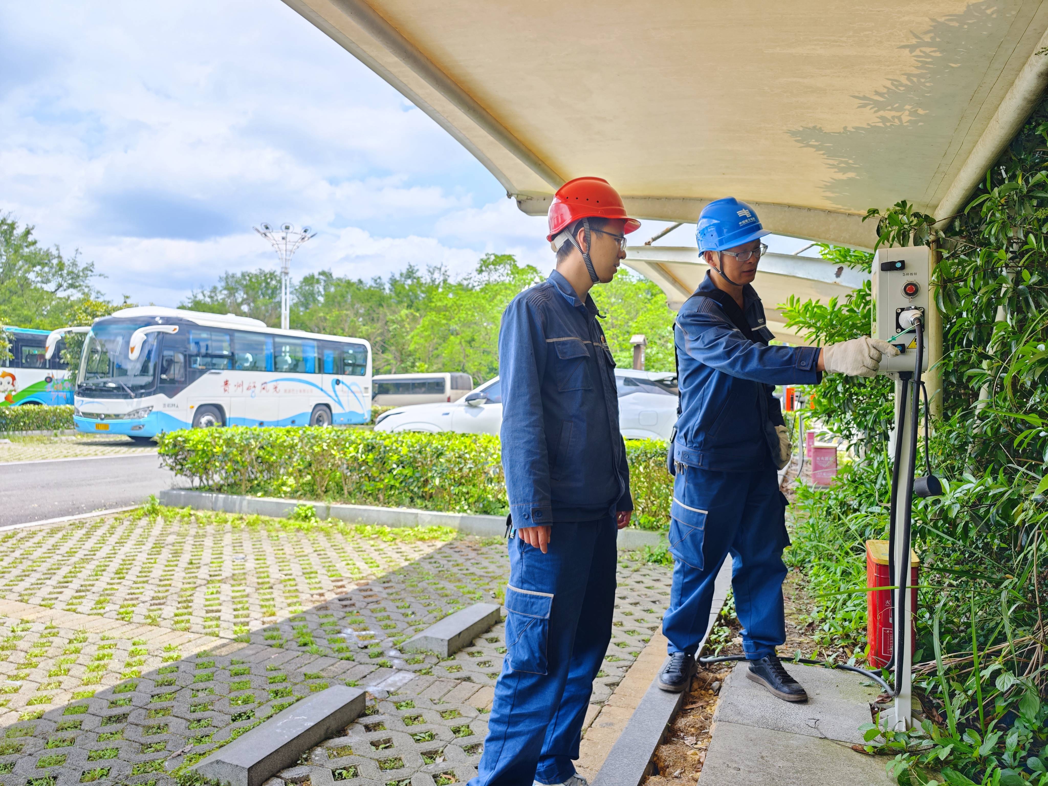 南方电网贵州铜仁供电局工作人员在高速公路服务区开展充电桩运维检查。(吴瑾 摄)在今年9月底通车的世界第一高桥贵州花江峡谷大桥旁,云渡服务区内同步建设的充电站已投入运营。“总共有34把充电枪,都是快充桩。”云渡服务区负责人谢博然说,最大600千瓦的充电功率,让充电速度明显提升,深受新能源车主欢迎。